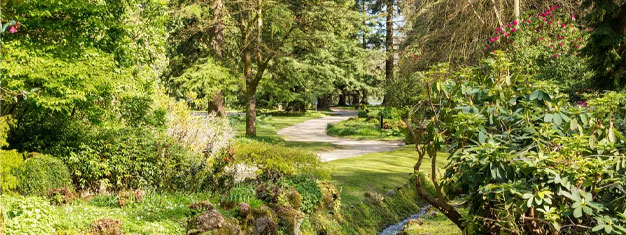 From here, wander through the elegant Jubilee Parterre, where symmetrical planting beds and vibrant blooms create a charming formal garden setting. Continue along winding paths into peaceful woodland areas and discover hidden corners like The Glen, where streams flow beneath tall trees and birdsong fills the air.